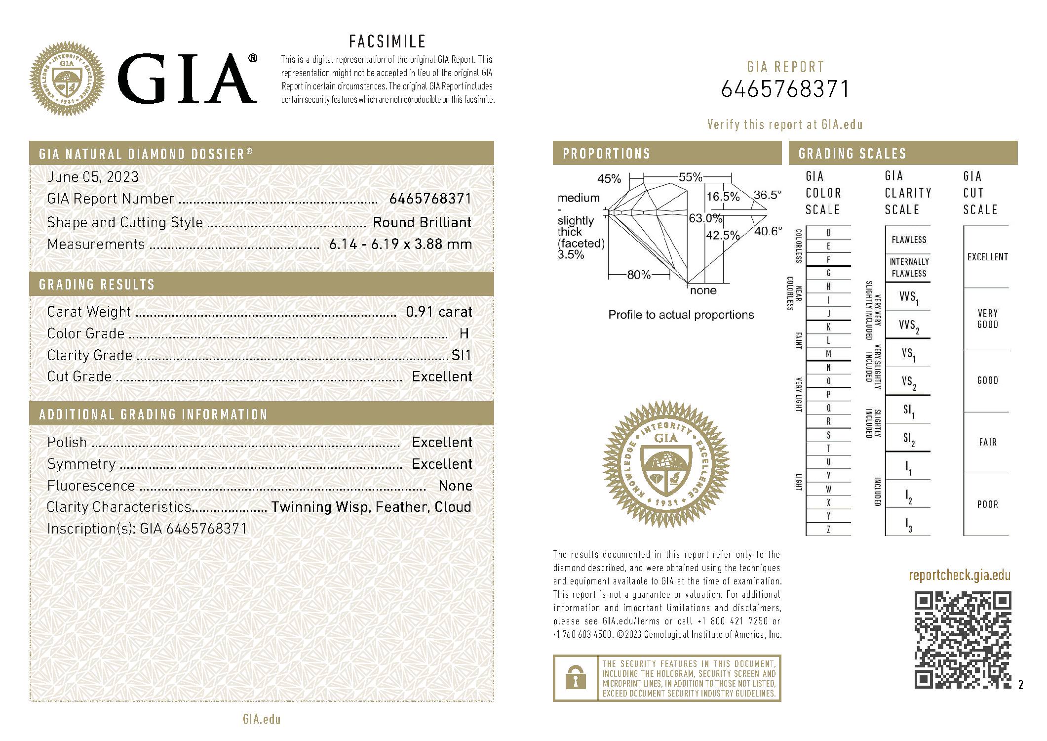 | HIA 18091 | Round | 0.91 | H | SI1 | |