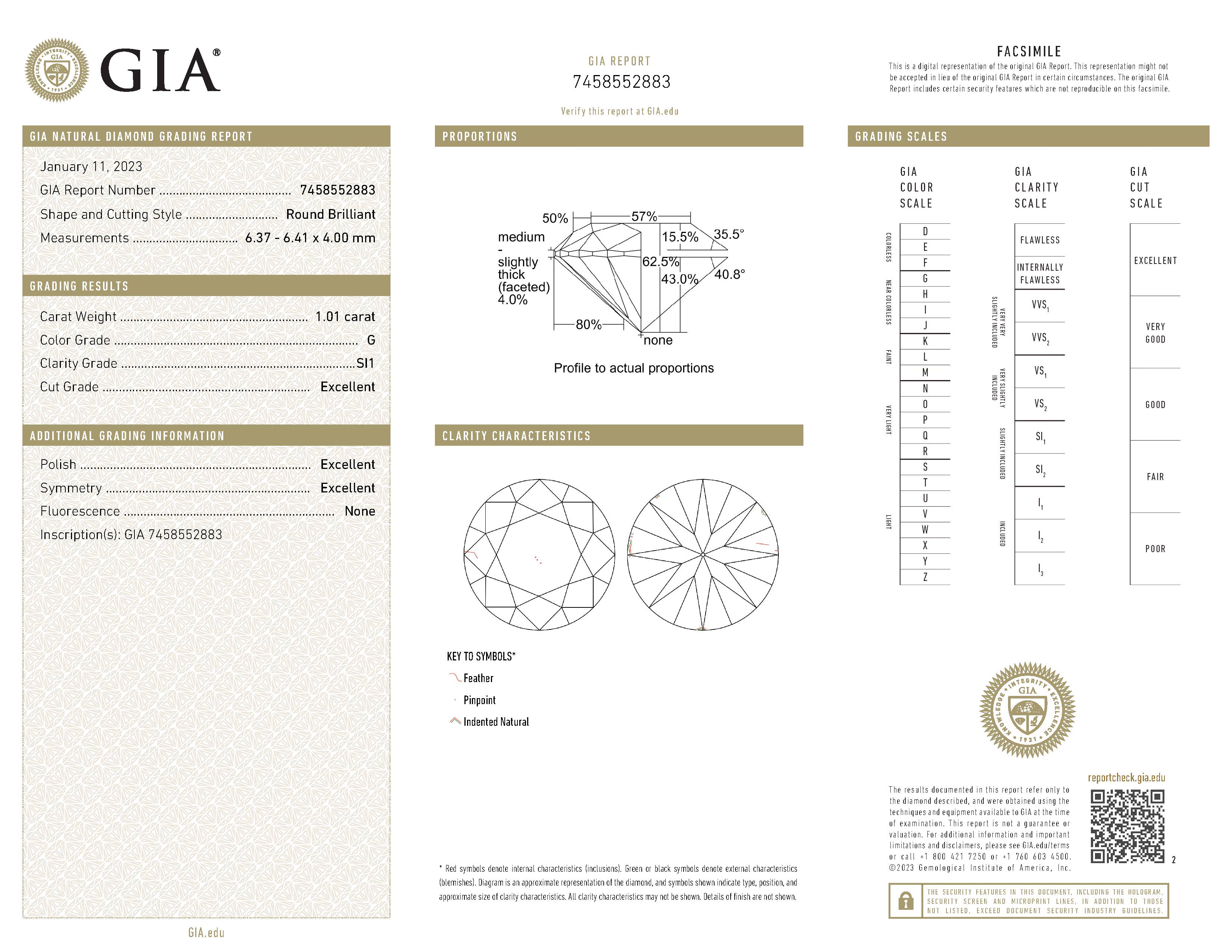 | HP 480101 | Round | 1.01 | G | SI1 | |