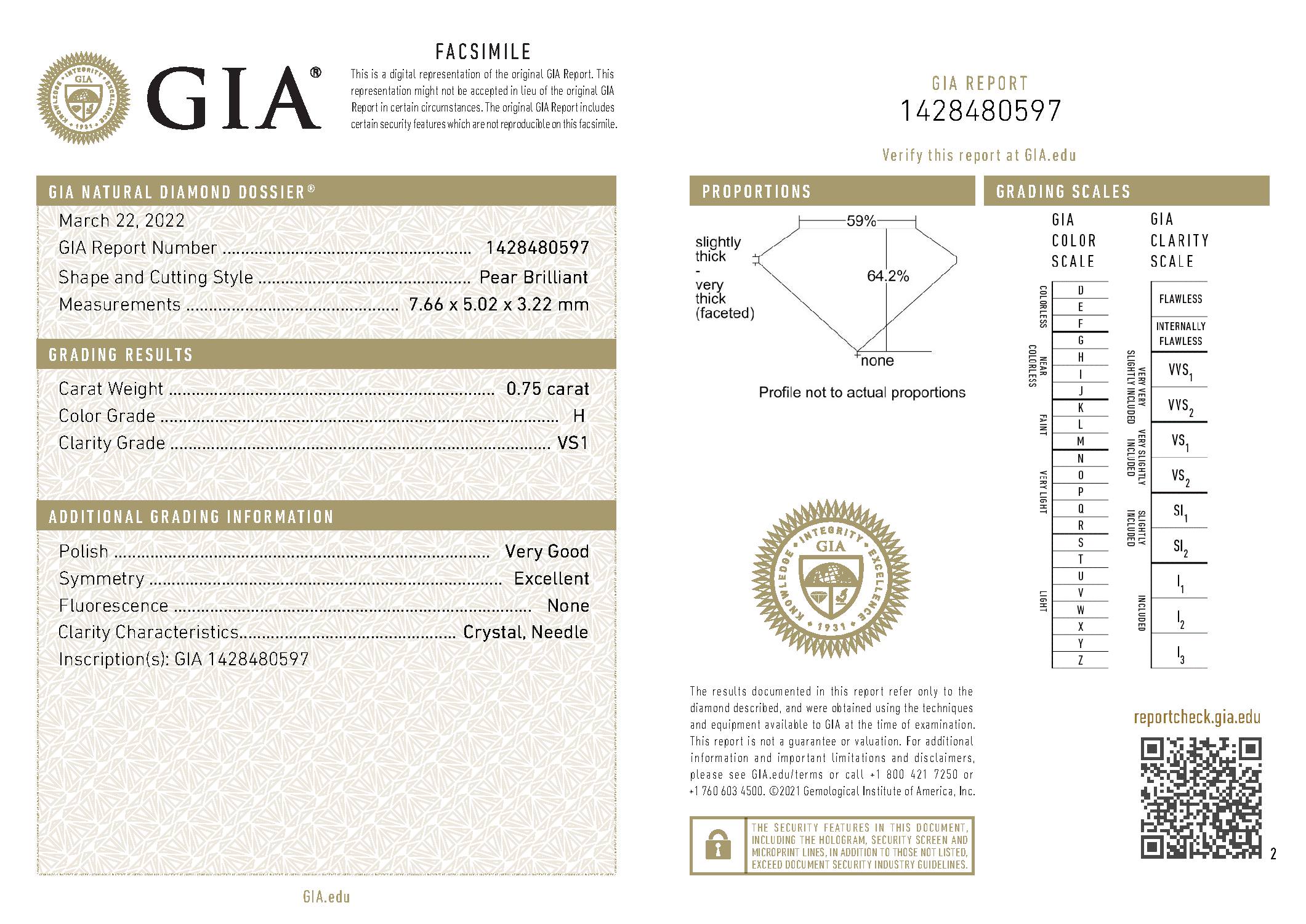 | HDG 78075 | Pear | 0.75 | H | VS1 | |