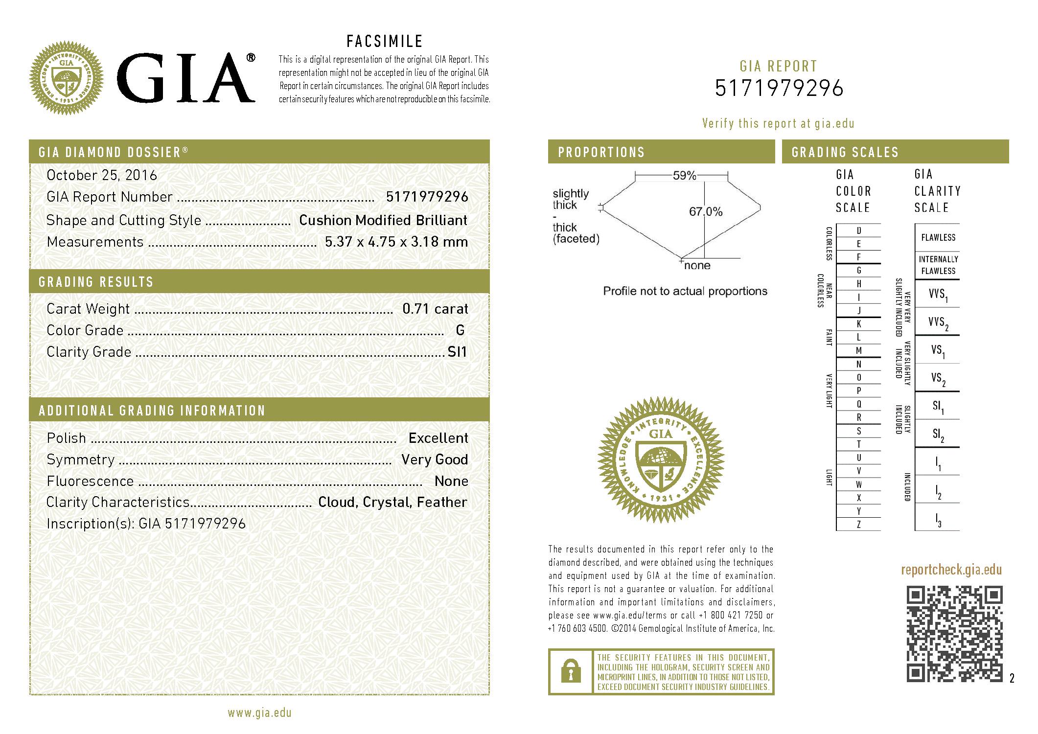 | HUG 68071 | Cushion | 0.71 | G | SI1 | |