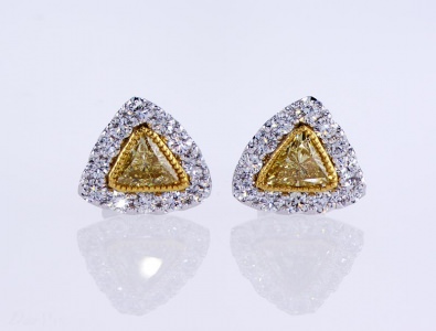 Fancy Yellow Trillion Halo Earrings 1.08 tw yellow trillion 0.82 tw melee 16.67 ct tw without backs