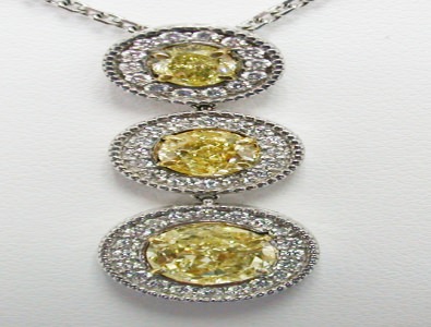 Dangling Fancy Yellow Oval Pendant 0.55 ct fy ov top 0.83 ct fy ov center 1.72 ct fy ov bottom 0.48 tw wh melee 50.46 ct tw