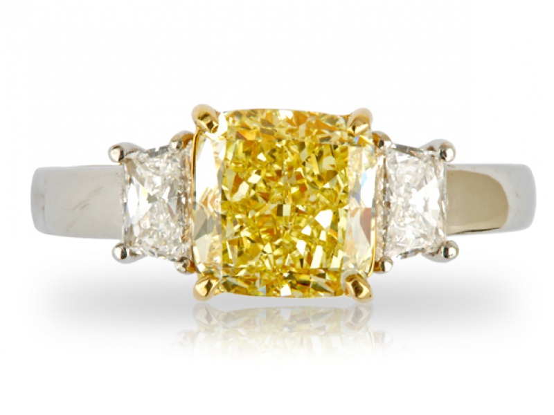FY SQ BRI & TRAPS RING 2.28 CT FY RAD CENTER 0.54 TW WH TRA SIDES
