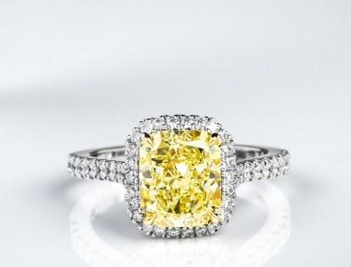 Fancy Yellow Radiant Halo Ring 3.01 ct fancy yellow radiant gia 0.53 tw wh melee 34.82 tw