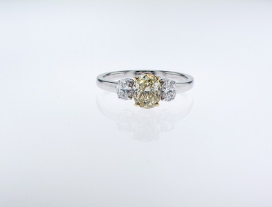 Fancy Light Yellow Oval 3 Diamond Ring 1.00 ov fly si1 gia 0.47 tw wh ovals 16.66 ct tw