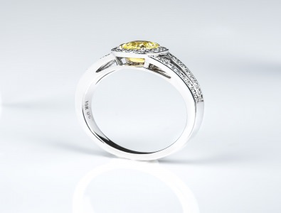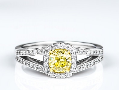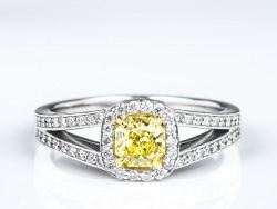Fancy Light Yellow Cushion Halo Ring 0.50 ct fly ocotagon 0.27 tw wh melee 23.72 ct tw