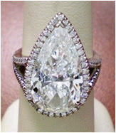 Pearshaped Split Shank Halo Ring 7.20 ct ps aqua center 0.76 tw melee 59.86 ct tw