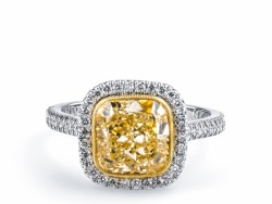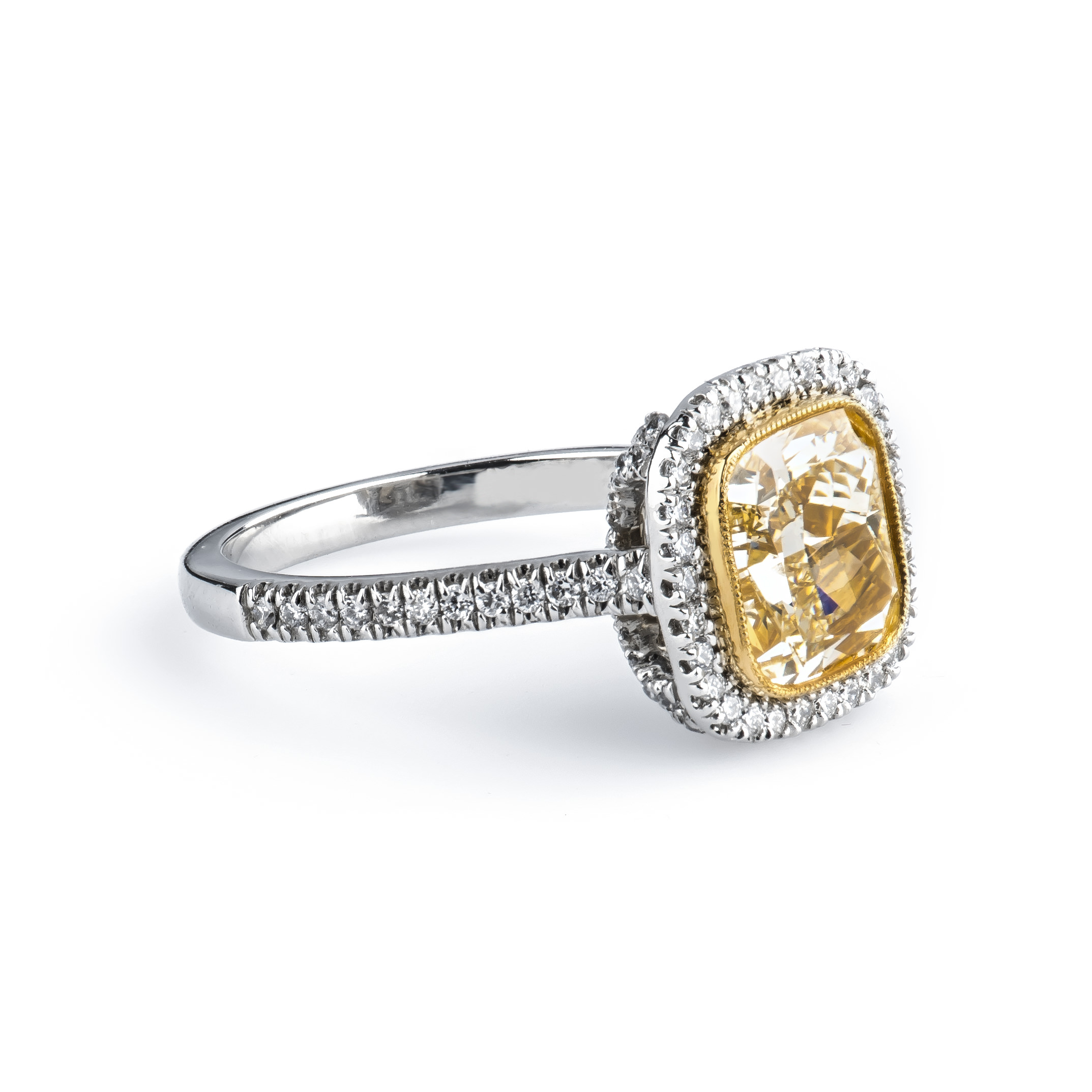 Fancy Light Yellow Cushion Halo Ring 3.01 ct fly si1 gia 0.58 tw wh melee 37.23 ct tw