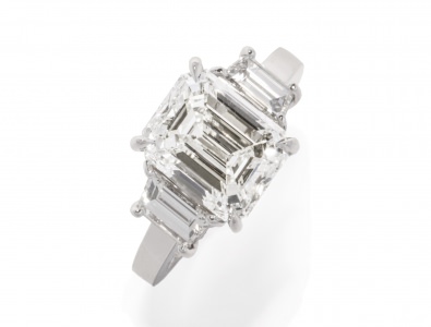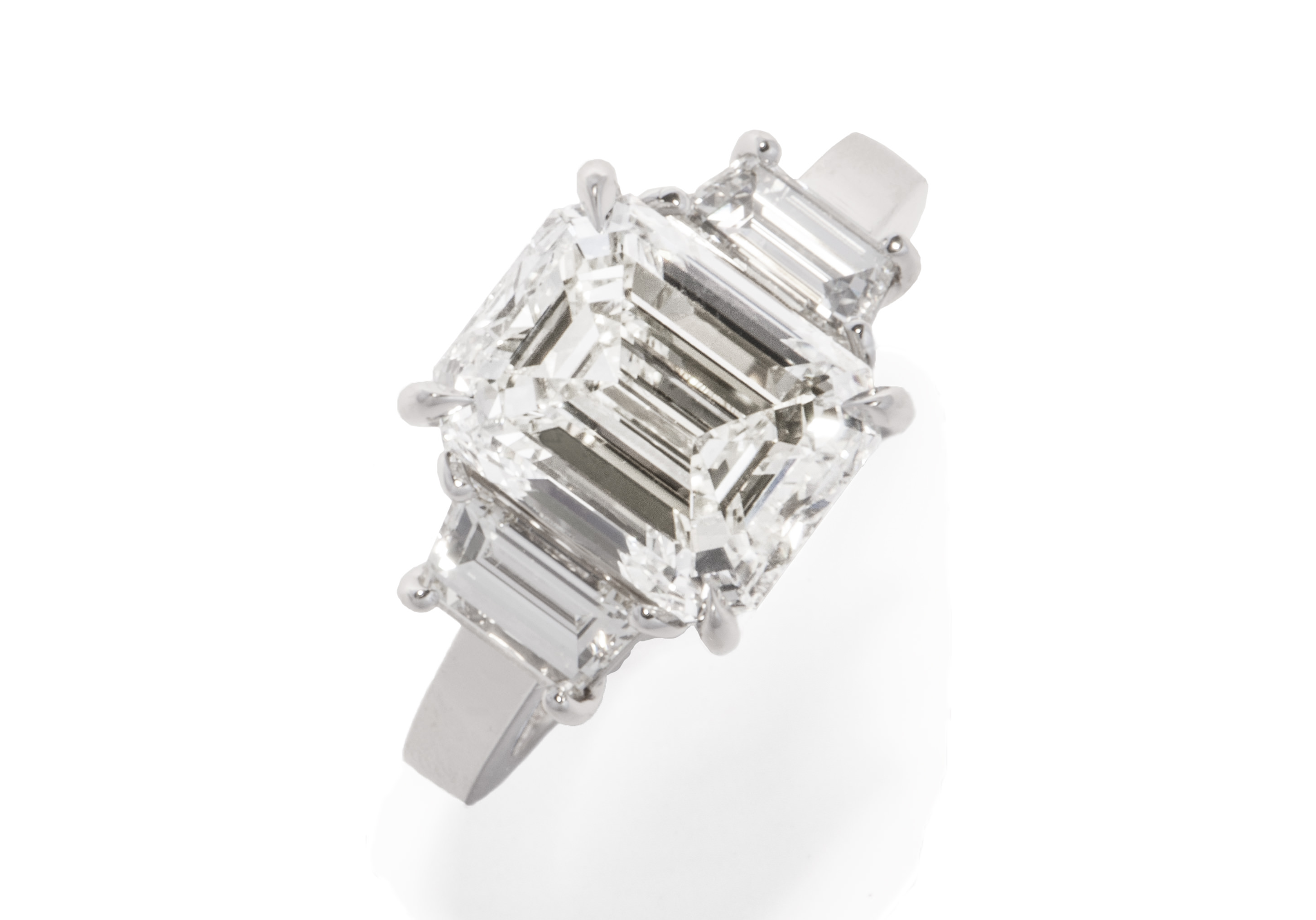 Emerald Cut and Trapezoid Ring 4.52 ct ec center 0.99 tw trapezoid sides 39.91 ct tw