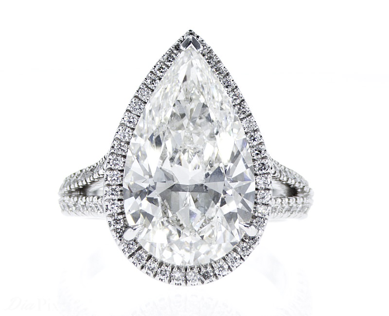 Pearshaped Halo Split Shank Ring 7.02 ct ps center 0.86 tw melee 57.45 ct tw