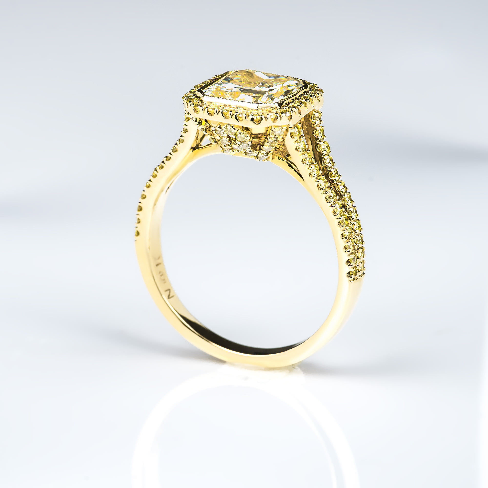 FLY Radiant Halo Ring 1.70 CT TW FLY SI1 RAD CENTER 0.49 CT TW FY BR MELEE