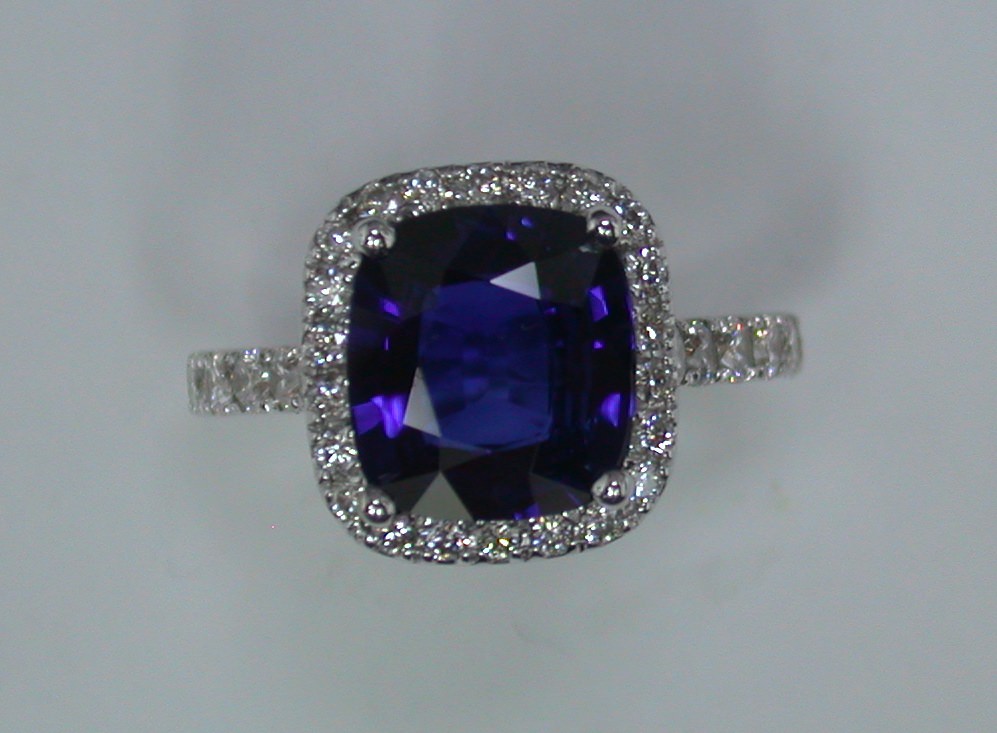 Blue Sapphire Cushion Ring 3.01 ct cu blue sapphire gia 0.99 ct tw br h si 22.61 ct tw