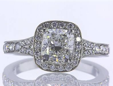 Cushion Halo Split Shank Ring 1.40 ct cu g vs2 gia 0.68 ct tw melee 28.73 ct tw