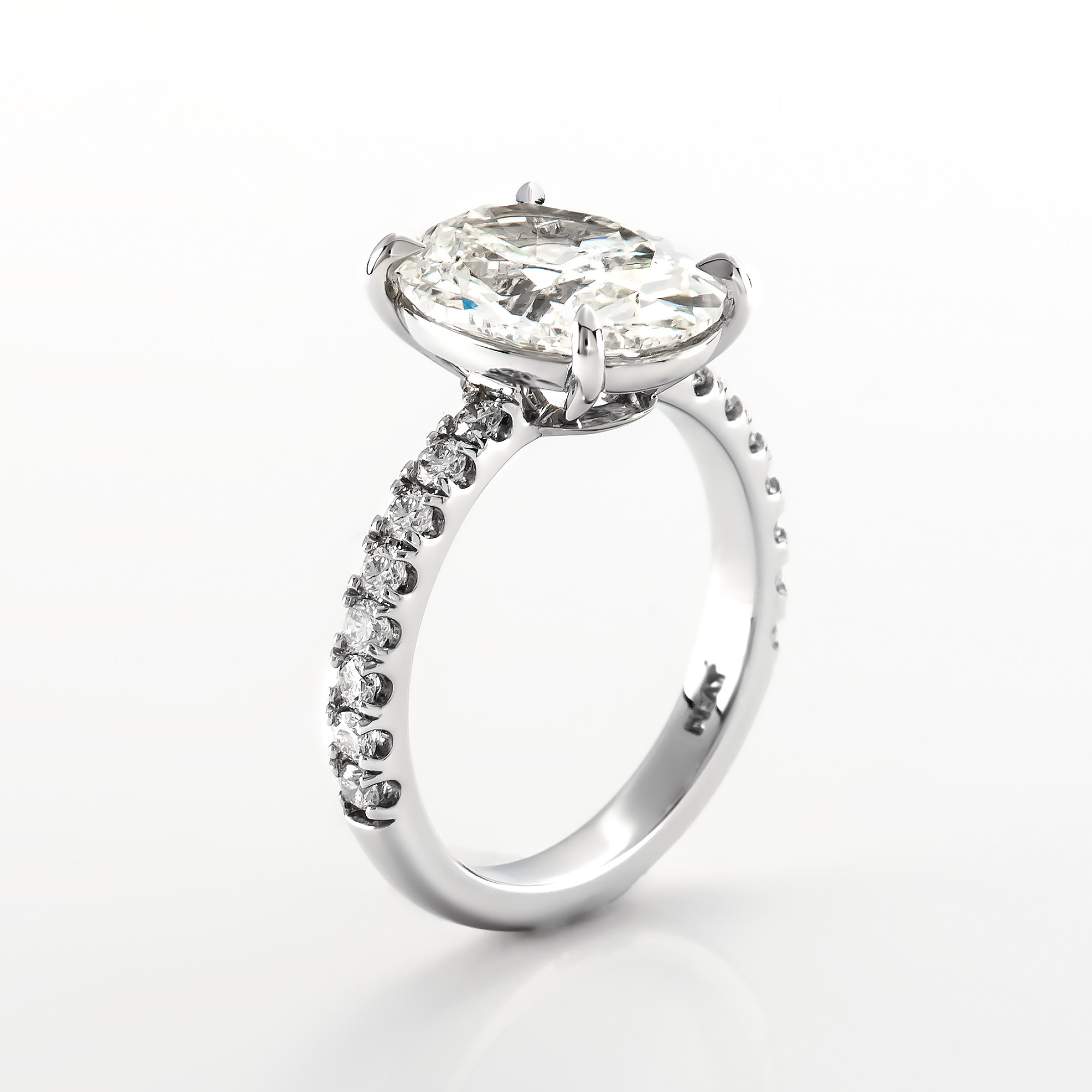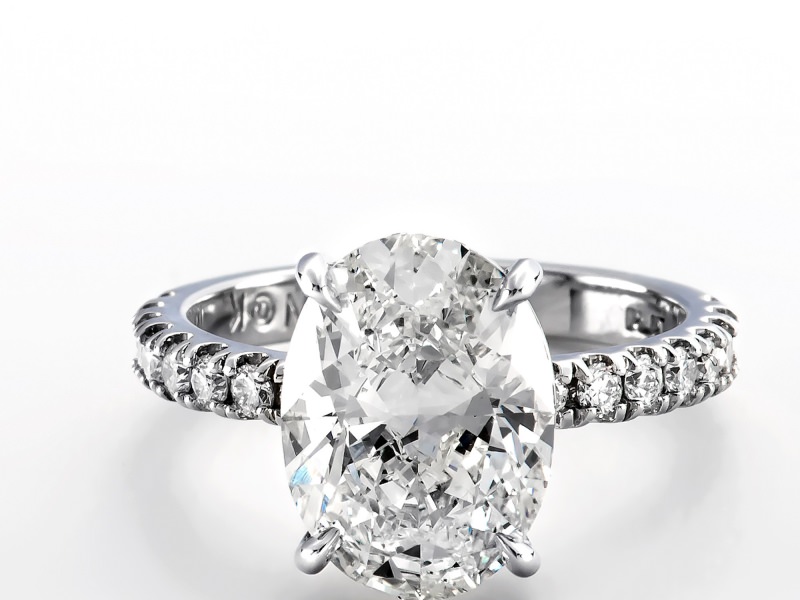 Oval Solitaire Pave Shank Ring 4.06 ct ov j si2 gia 0.46 tw melee 33.02 ct tw