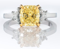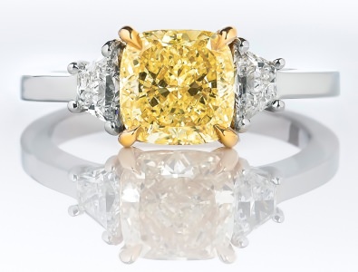 Fancy Yellow Cushion and Trapezoid Ring 2.12 ct cu fy si2 gia 0.51 ct trapezoid f vs 24.19 ct tw