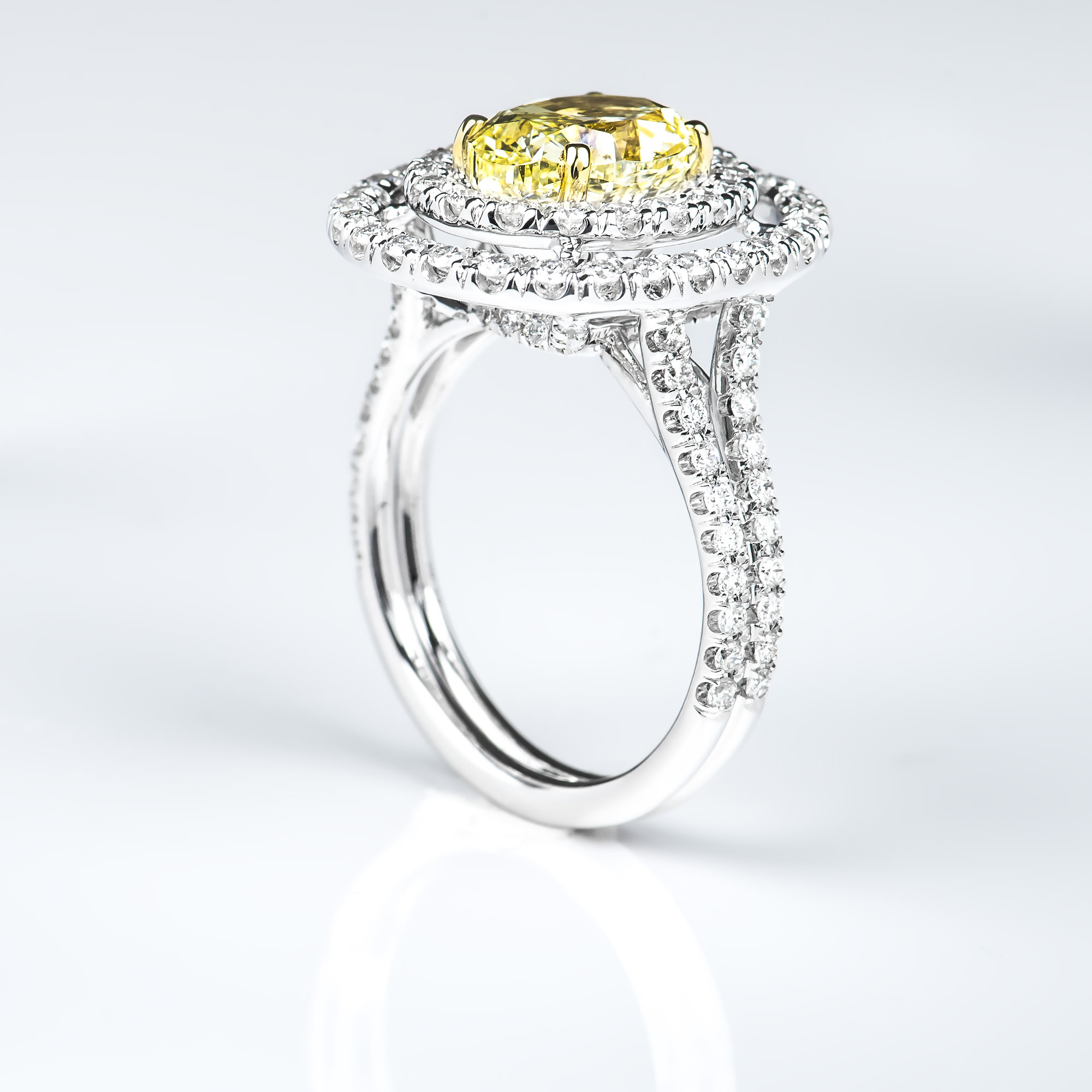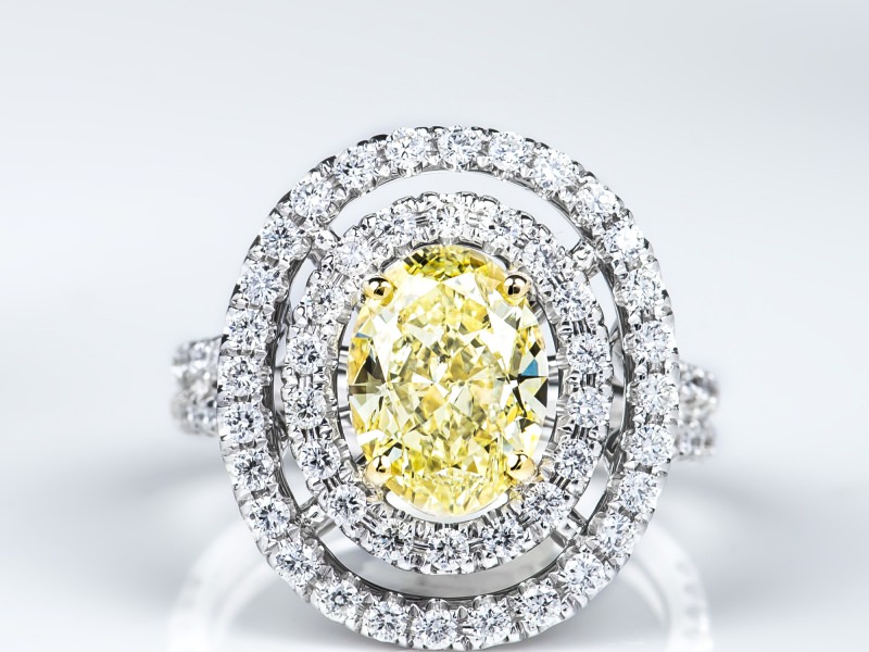 Fancy Light Yellow Oval Double Halo Ring 2.57 ct fly si1 ov 1.07 tw melee 39.24 ct tw