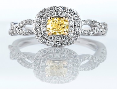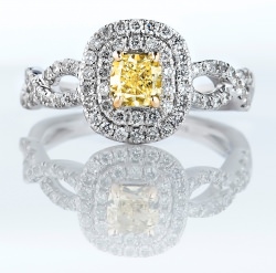 Fancy Intense Yellow Cushion Double Halo Ring 0.51 ct cu fiy vs2 gia 0.58 ct br h si 20.16 ct tw