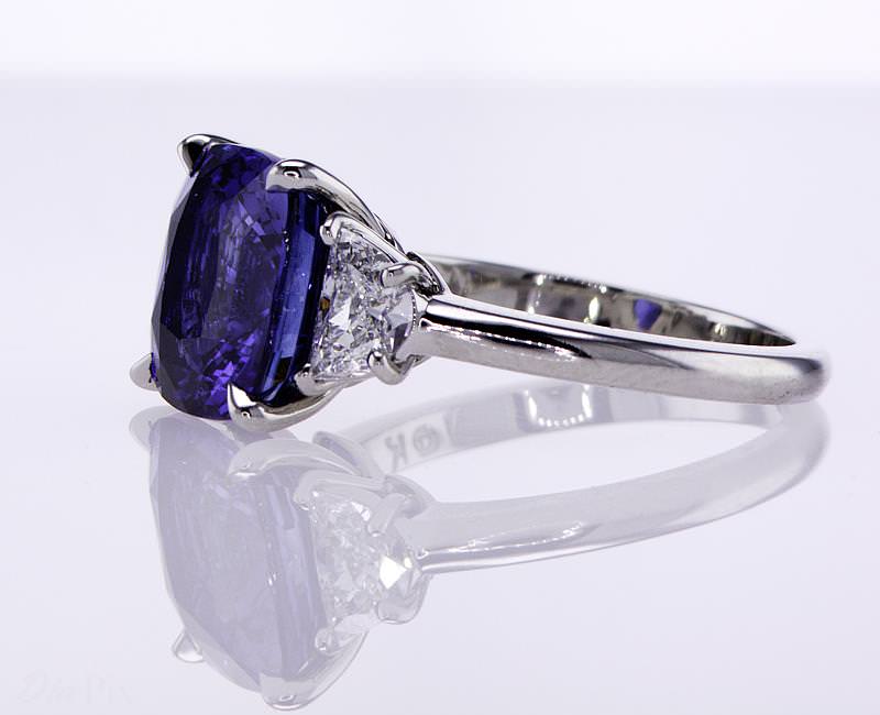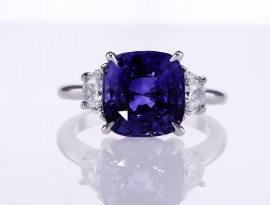 Blue Sapphire Cushion Ring 5.59 ct cushion sapphire 0.64 tw half moons 36.67 ct tw