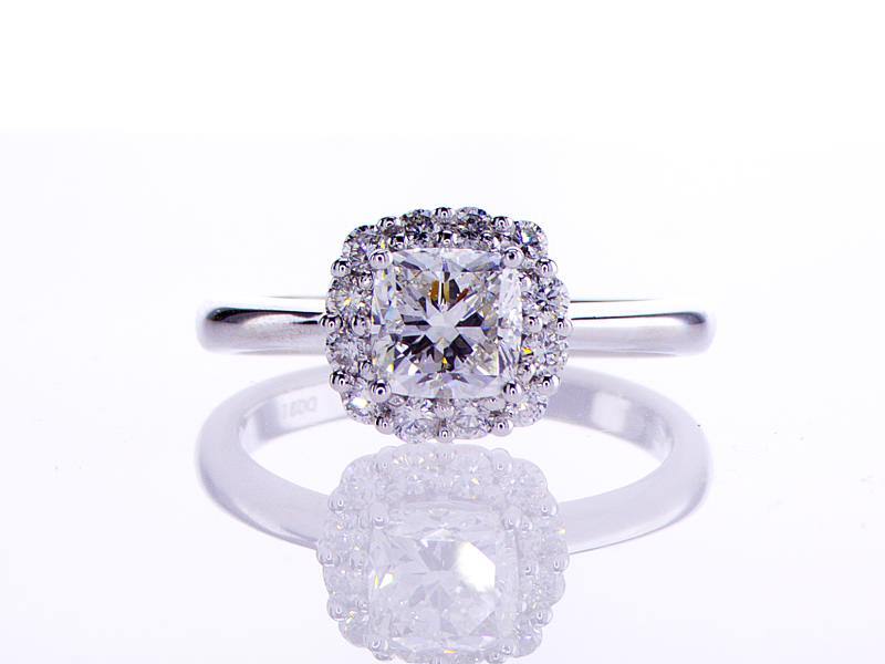 Cushion Halo Ring 1.02 ct cu f vs2 gia 0.31 tw melee 20.27 ct tw