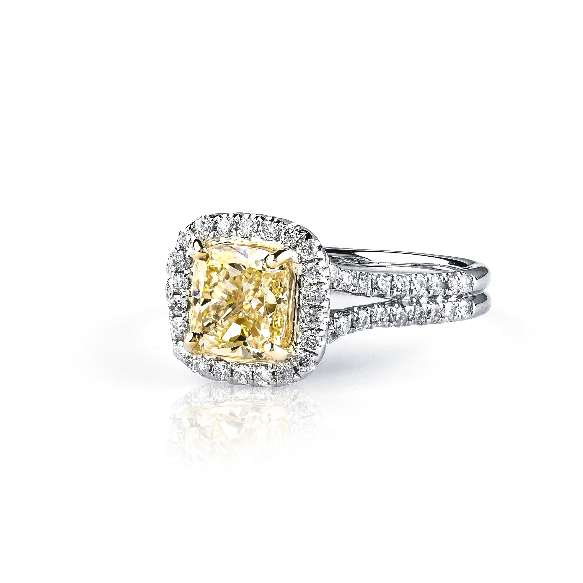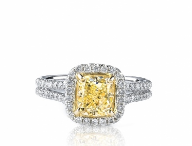 Cushion Halo Split Shank Ring 1.56 cu y-z vs2 gia 0.46 tw melee 21.25 ct tw
