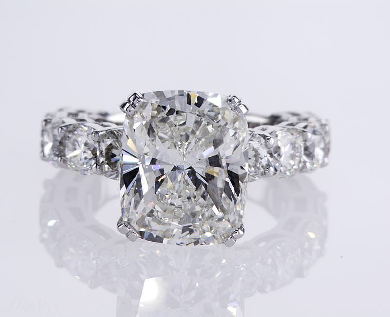 Cushion Engagement Ring 7.06 ct cu j vs1 gia 3.00 tw cb j vs1 0.21 tw melee 57.45 ct tw