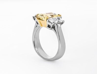 Fancy Light Yellow Radiant and Trapezoid Ring 2.05 ct fly si1 gia 1.00 wh trapezoid 38.50 ct tw