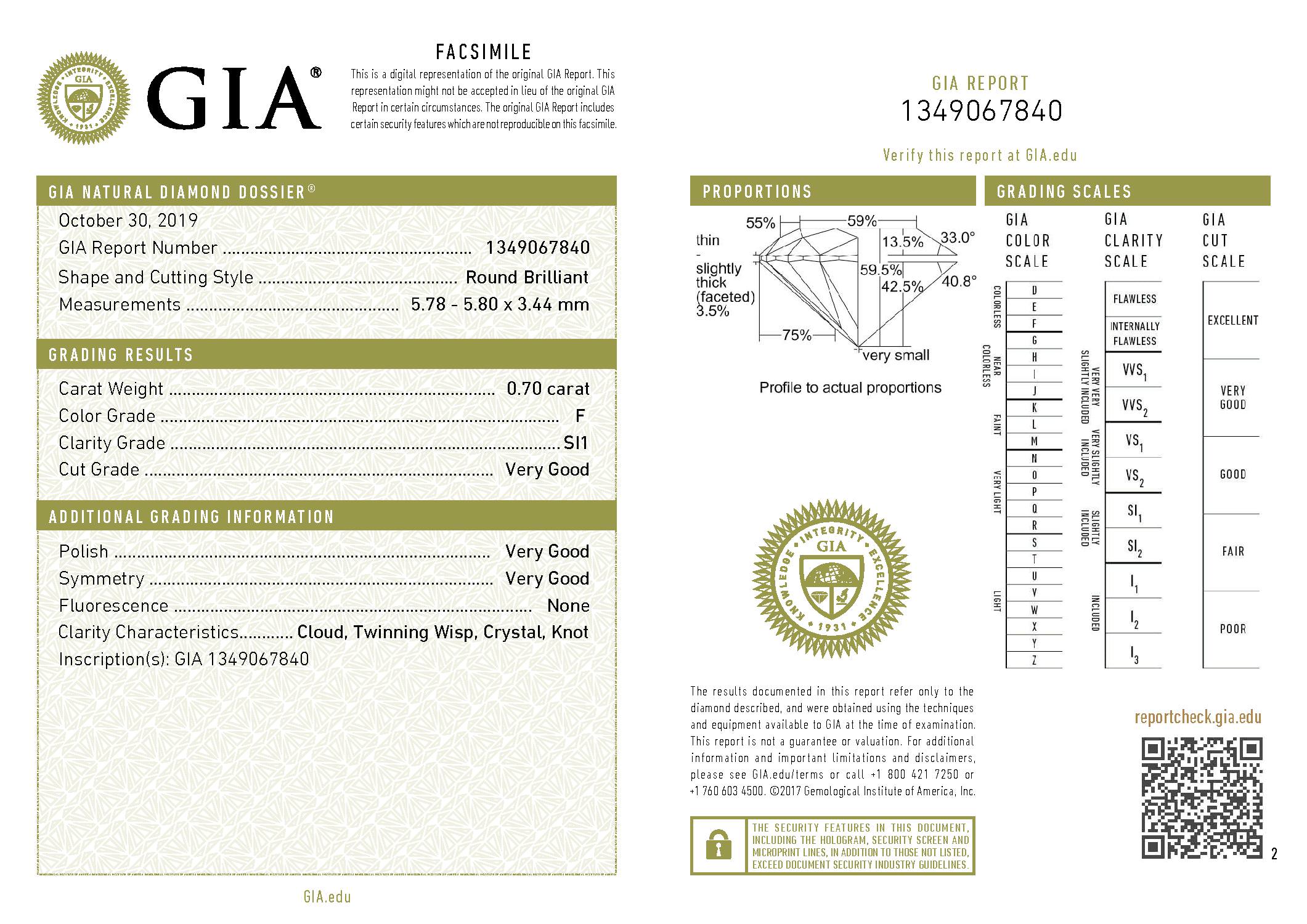 | HUG 22070 | Round | 0.70 | F | SI1 | |