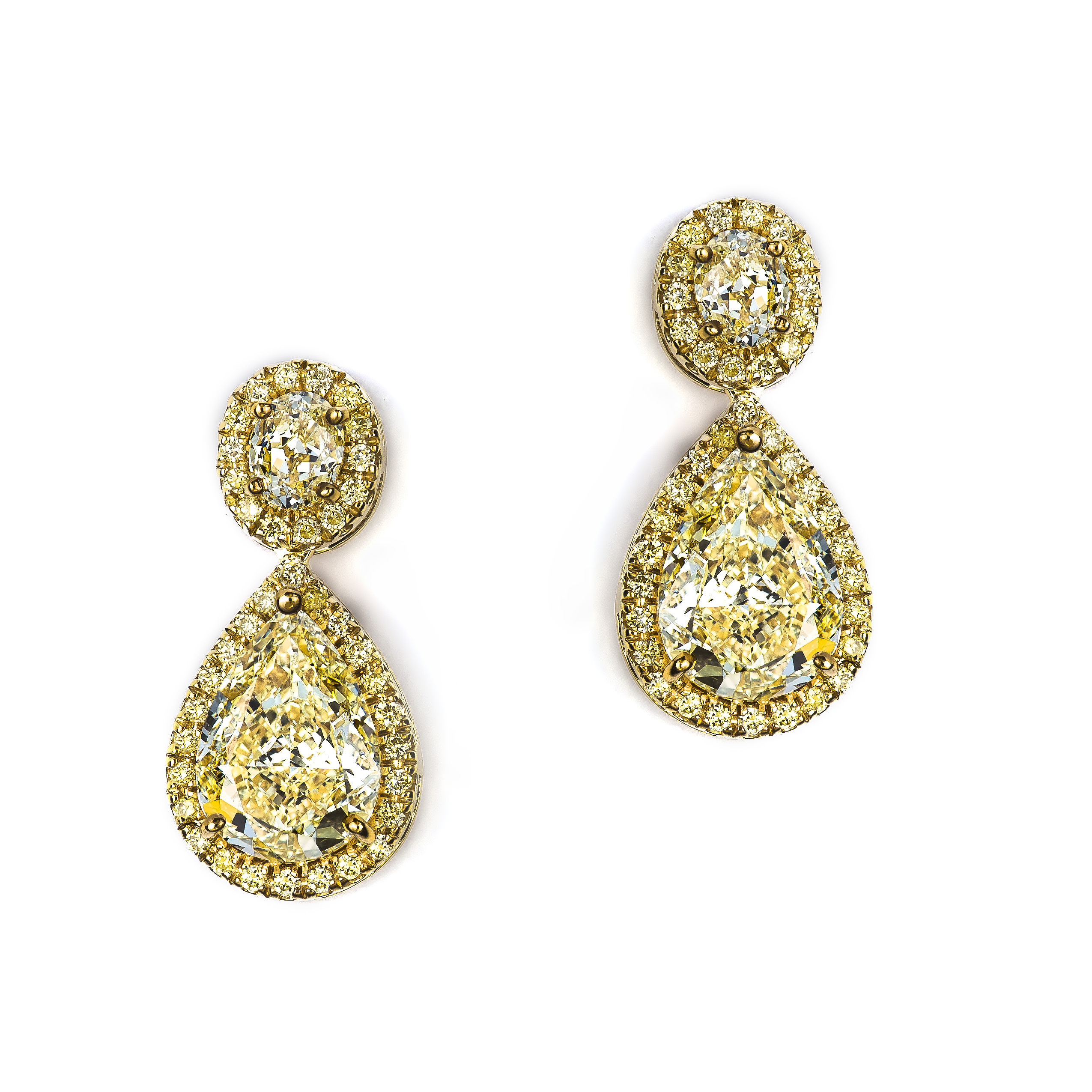 Fancy Light Yellow Pearshaped Dangling Earrings 2.00 ps fly vvs2 gia 2.03 ps fly vvs2 gia 0.65 tw ov fy vvs 0.38 tw fly melee 36.20 tw without backs