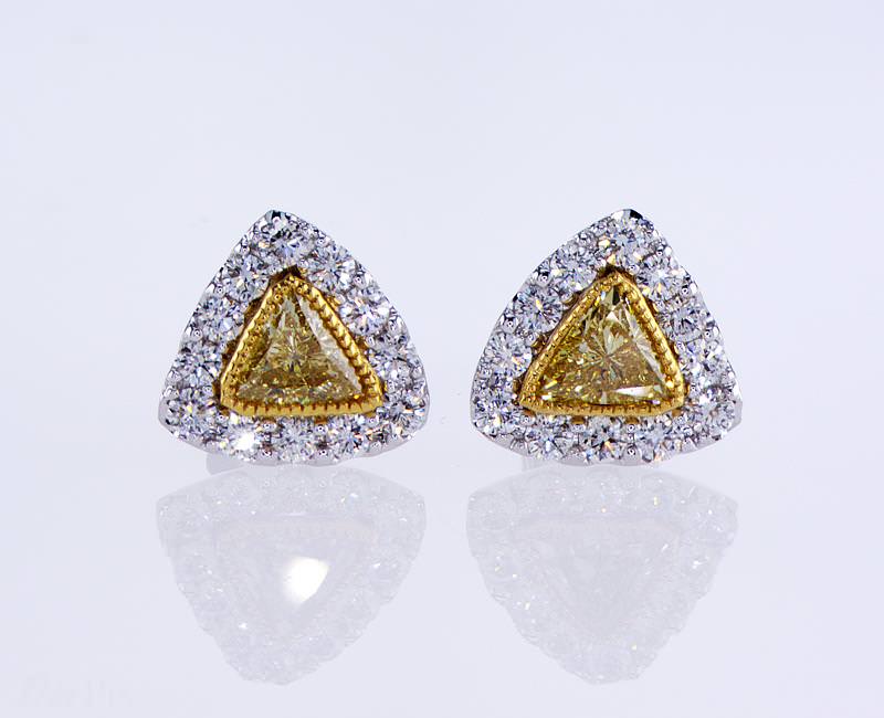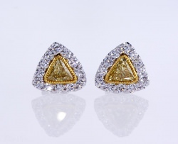 Fancy Yellow Trillion Halo Earrings 1.08 tw yellow trillion 0.82 tw melee 16.67 ct tw without backs
