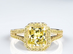 Fancy Light Yellow Radiant Halo Ring 1.70 ct fly radiant center 0.49 ct tw fy melee 23.67 ct tw note: made with 18WRY
