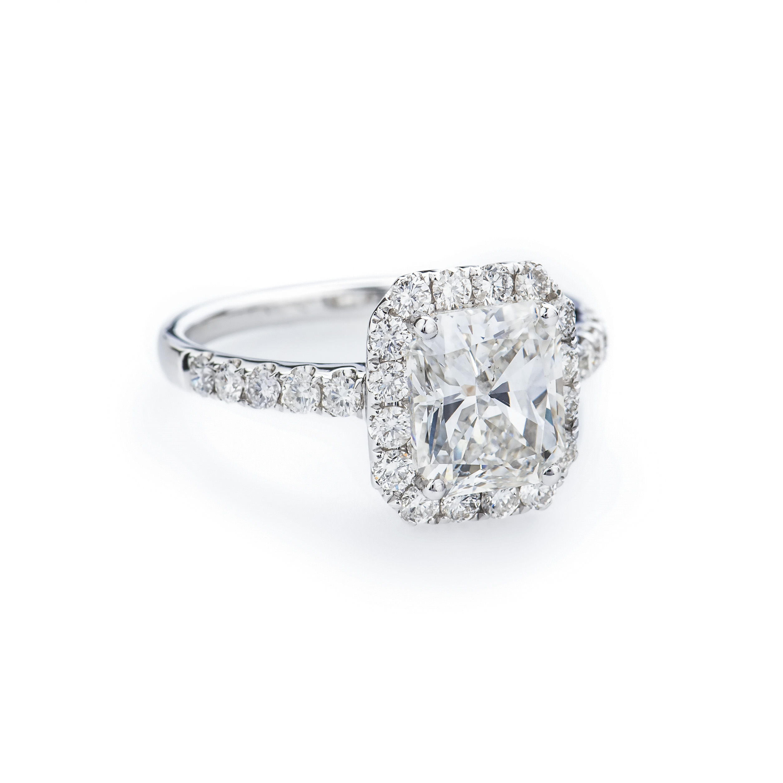 Radiant and Halo Ring 2.50 ct radiant g si2 gia 0.67 ct tw br h si 7.89 ct tw