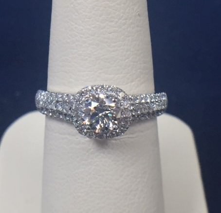 Round Halo Three Row Shank Ring 0.50 ct br 0.39 tw wh melee 17.26 ct tw