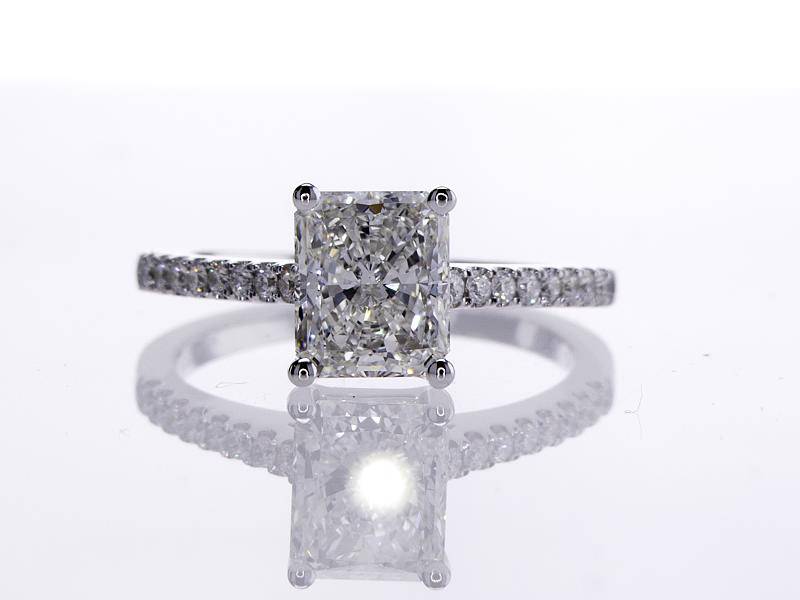 Radiant Solitaire Ring 1.71 ct rad i vs1 gia 0.18 tw melee 17.89 tw melee