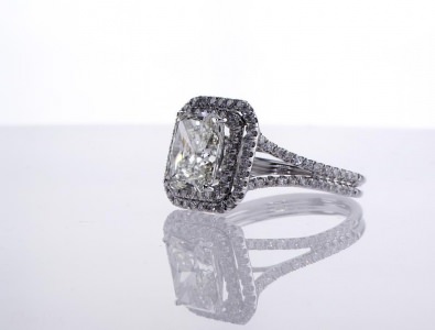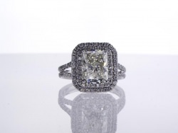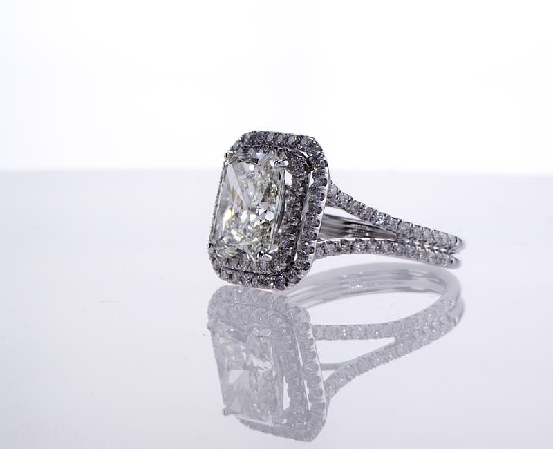 Double Halo Radiant Ring 3.01 ct radiant i vs2 egl 0.78 tw melee 26.54 ct tw